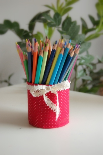 Mióta a kislányom rajzol – az kb. 2 éve tart -, a színes ceruzákat és a filctollakat a csemegekukorica konzerves dobozában gyűjtjük.